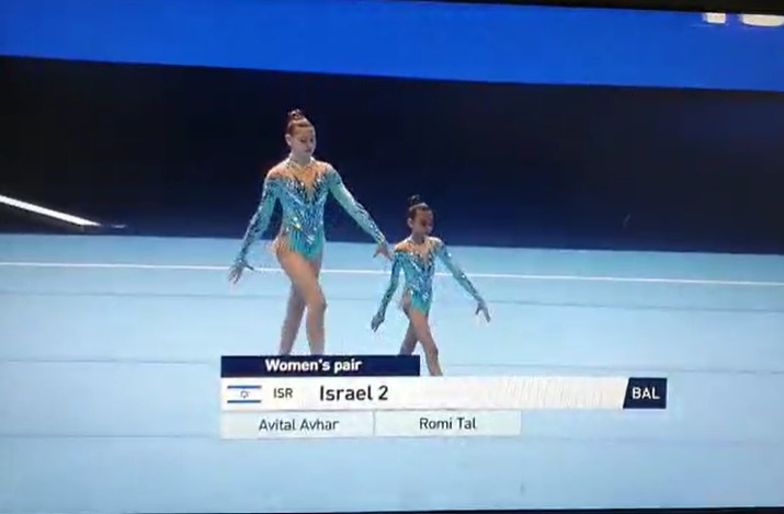 גם בהתעמלות. רומי ואביטל על בימת האליפות בבאקו