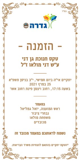הציבור מוזמן לטקס חניכת הגן.