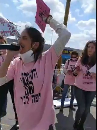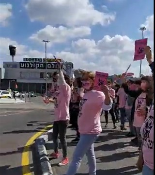 עשרות המפגינים שהגיעו לכיכר בכניסה למתחם, לבושים בחולצות ובמסיכות קורונה ורודות ממותגות. המפגינים קראו למנהל המתחם להתפטר והבטיחו לעוברים והשבים שהם לא ישתקו על העוול שנגרם למנהלת הסניף וכי בכוונתם להגיע להפגין זאת במקום גם בשבוע הבא עד לתיקון העוול.