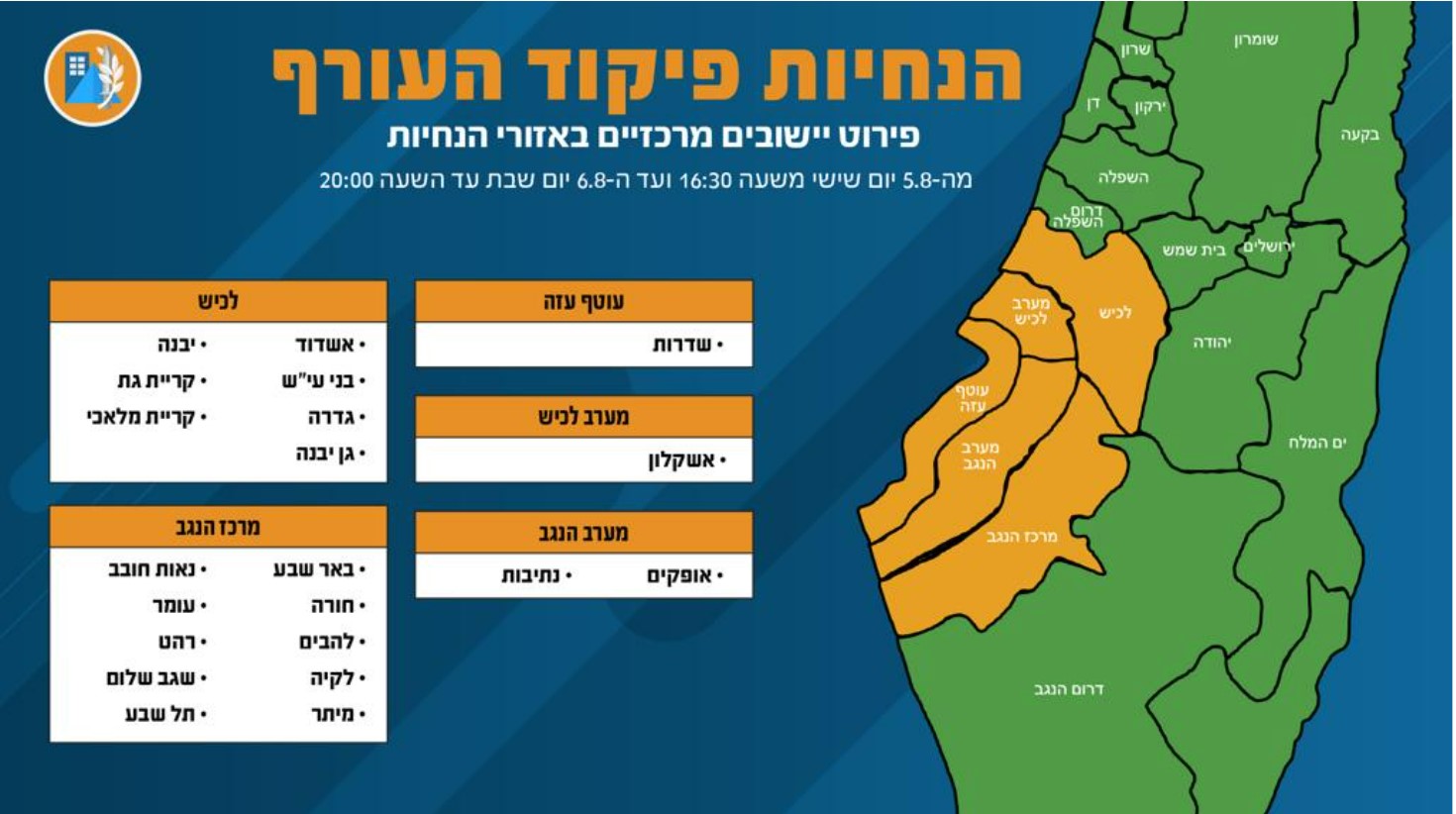 עוד קודם לנפילה הבהיר פיקוד העורף את ההנחיות לכלל יישובי העוטף במעגל שעד 80 ק”מ, זאת עוד קודם לתחילת גלי התקיפות המורגשים לאורך שעות הערב לאורכה ולרוחבה של טבעת עוטף ישראל הסמוכה לרצועת עזה.