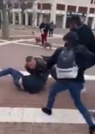 מנקודה זו, כך על פי התיעוד שהתפרסם ברשתות החברתיות, האירוע יצא משליטה והשוטר החל להיאבק בנער תוך שהוא מטיל אותו לריצפה והודף מעליו גם אישה מבוגרת שניסתה להתערב בנעשה.