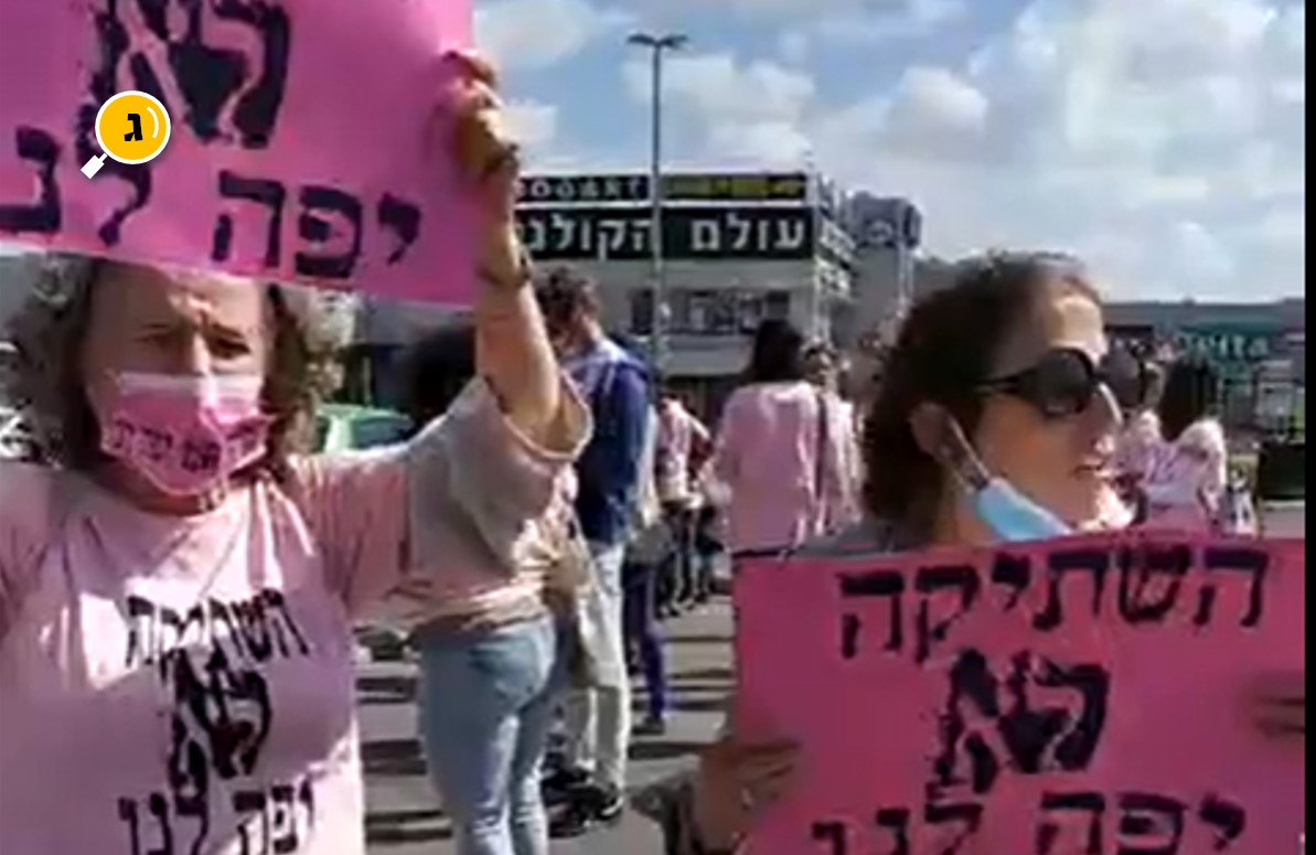 עשרות המפגינים שהגיעו לכיכר בכניסה למתחם, לבושים בחולצות ובמסיכות קורונה ורודות ממותגות. המפגינים קראו למנהל המתחם להתפטר והבטיחו לעוברים והשבים שהם לא ישתקו על העוול שנגרם למנהלת הסניף וכי בכוונתם להגיע להפגין זאת במקום גם בשבוע הבא עד לתיקון העוול.