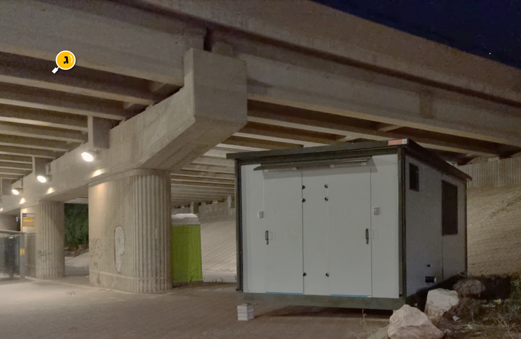 בימים האחרונים הוצב במקום מבנה יביל שמחולק לחדר מנוחה ממוזג ושני תאי שירותים, כולם סגורים בדלתות מקודדות כדי לאפשר כניסה לנהגים והנהגות בלבד.