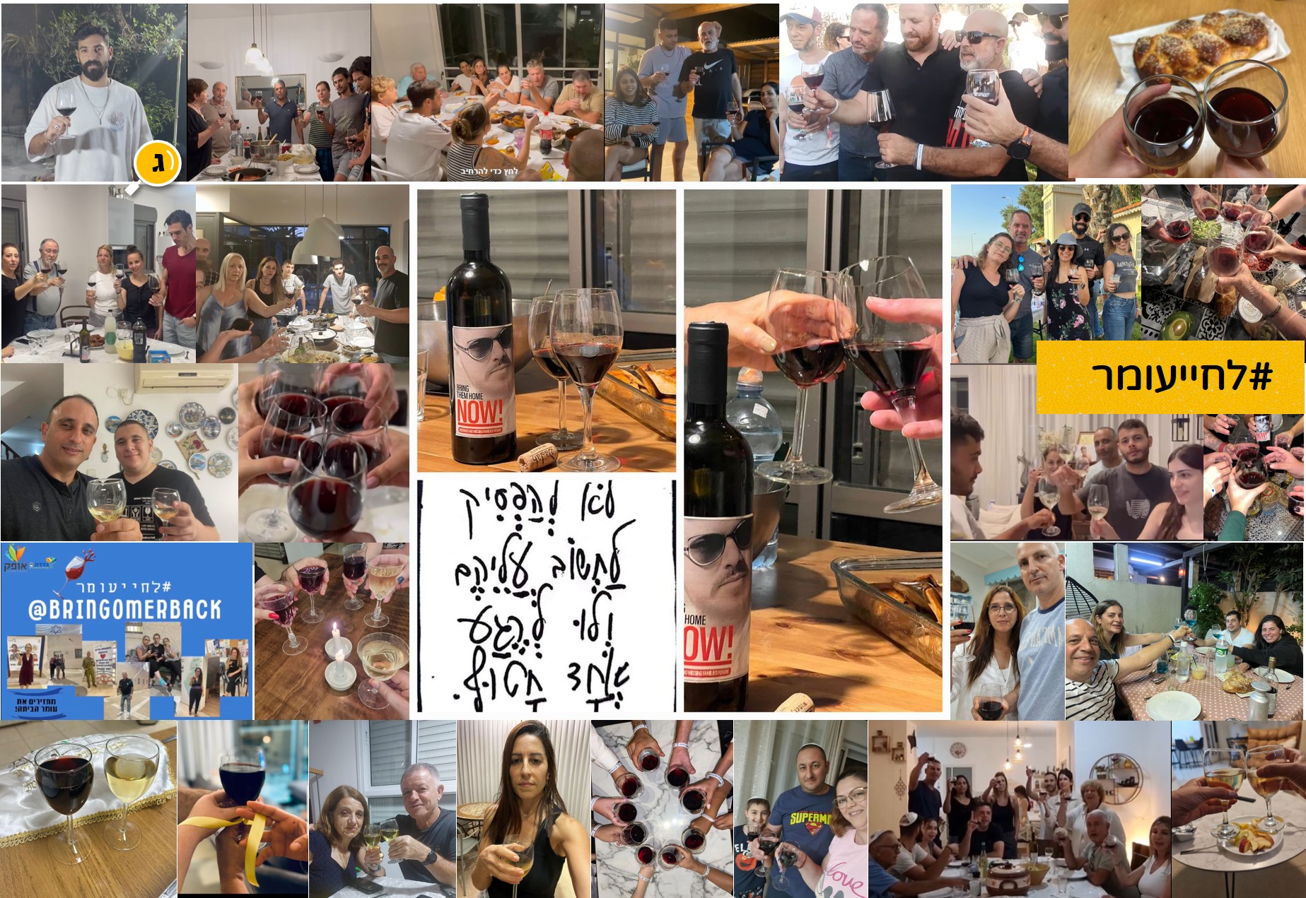 #לחייעומר. בערב שישי הרביעי בלעדיו, נענו עשרות רבות של תושבי גדרה לקריאתם של ניבה ושי ונקרט והרימו כוס יין לחיי בנם החטוף בידי ארגוני הטרור בעזה.