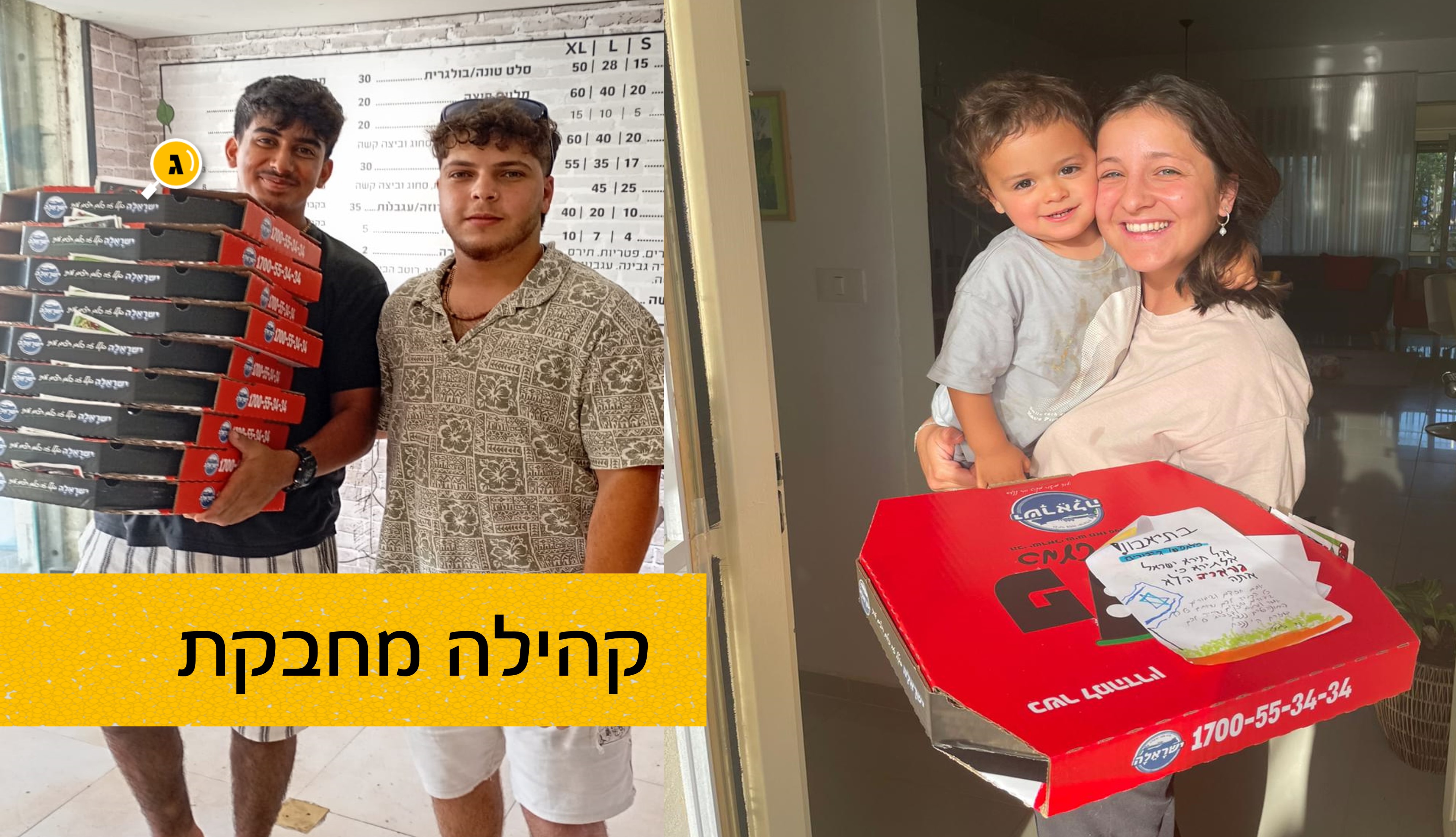 קהילה מחבקת. השבוע חלקו ילדי גדרה את הפיצות שנקנו באדיבות קהילת גדרה שהתגייסה למבצע בארגונו של הרב מיכאל סעייד, מבצע המהדק את כלל הגוונים באוכלוסיית גדרה, מהתורמים, הילדים המחלקים והמשפחות המתרגשות מהמחווה.