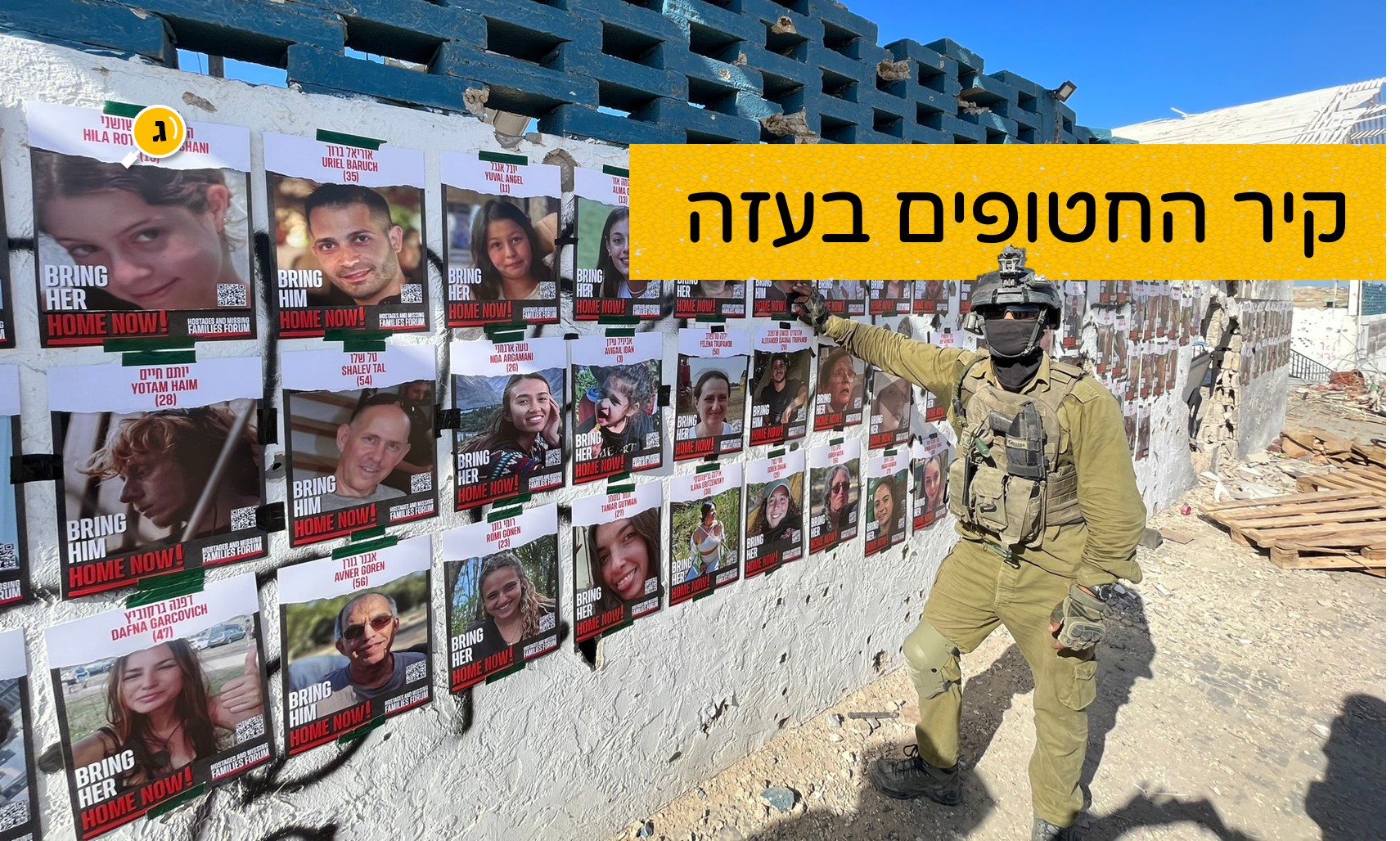 קיר החטופים בעזה. ההזדהות עם החטופים ובני משפחותיהם נראה שמשותף לכל ערי ישראל וביישובים רבים הקימו התושבים מיצגי הזדהות עם החטופים.