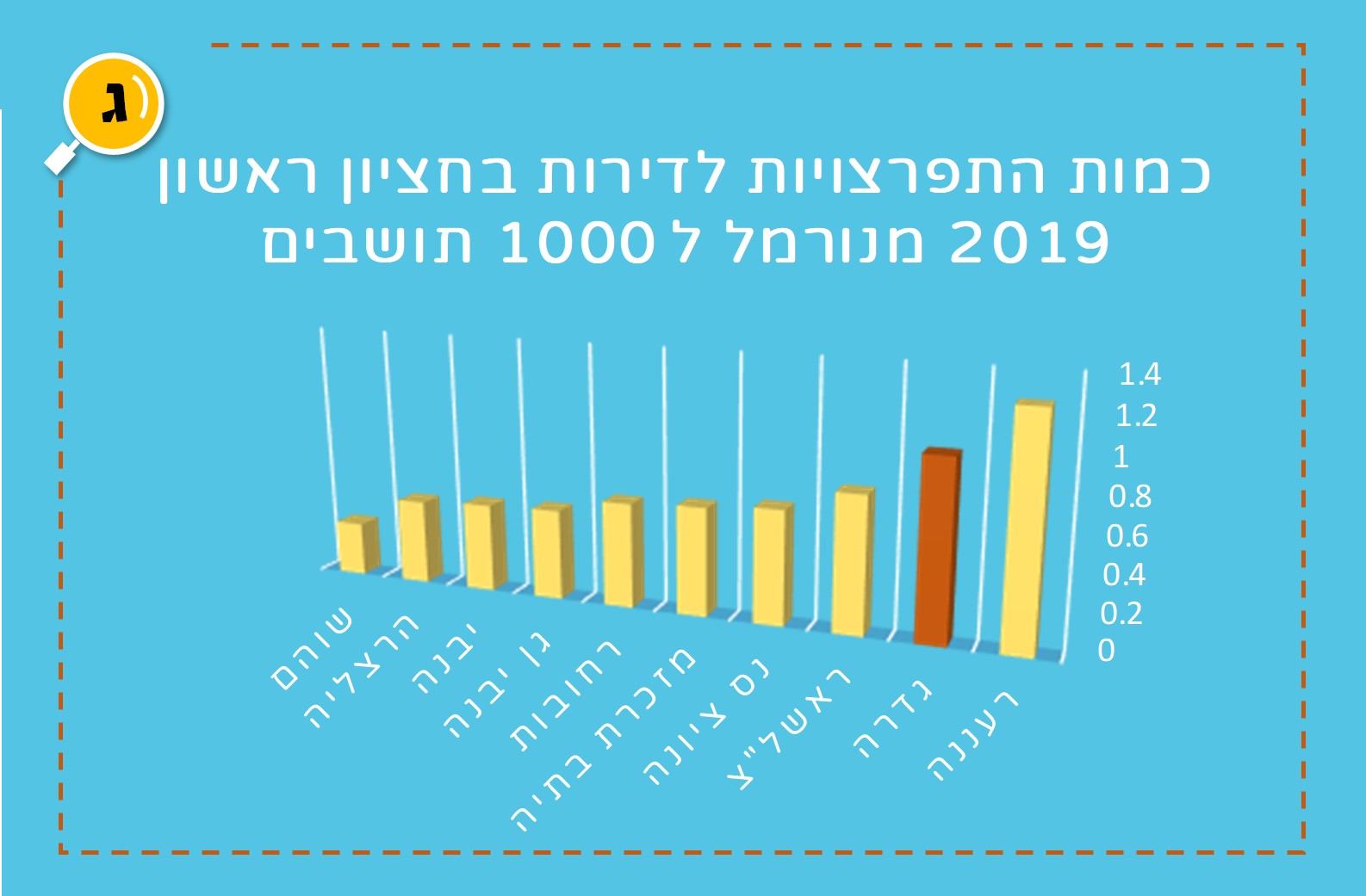 מהשוואת הנתונים ליישובים דומים באזורנו ובכלל עולה תמונה מטרידה עוד יותר. גדרה נמצאת בחזית הרשימה הלא מחמיאה, ראשונה מבין יישובי האזור ושנייה רק לראשל”צ מבין עשרת היישובים שכללנו בהשוואה.