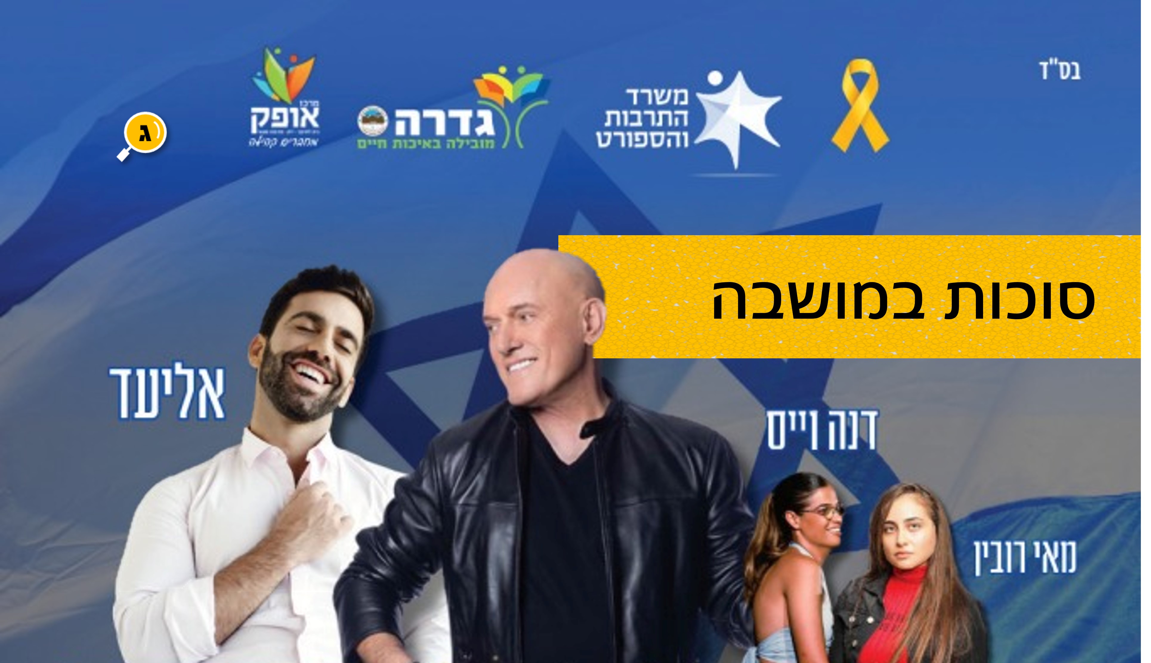 חגי תשרי בפתח ובגדרה נערכים לציין את חגיגות סוכות במופע משולב של הזמרים המובילים שלומי שבת ואליעד נחום באמפי גדרה.