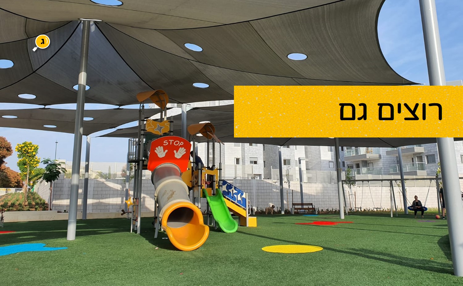 - רשתות צל מעל המתקנים הקיימים ומעל המתקנים החדשים שיוקמו. במצב הקיים קשה מאוד לשהות בגן בימי הקיץ ובכלל כשיש שמש. השמש קופחת, אין פינות מוצלות להורים ולילדים, הילדים המשחקים חשופים לשמש וחושפים את עורם לשמש ישירה. כמו כן המתקנים מתחממים מאוד עד כדי גרימת כוויות בידיים לילדים המשחקים דבר המסכן ופוגע בגופם!