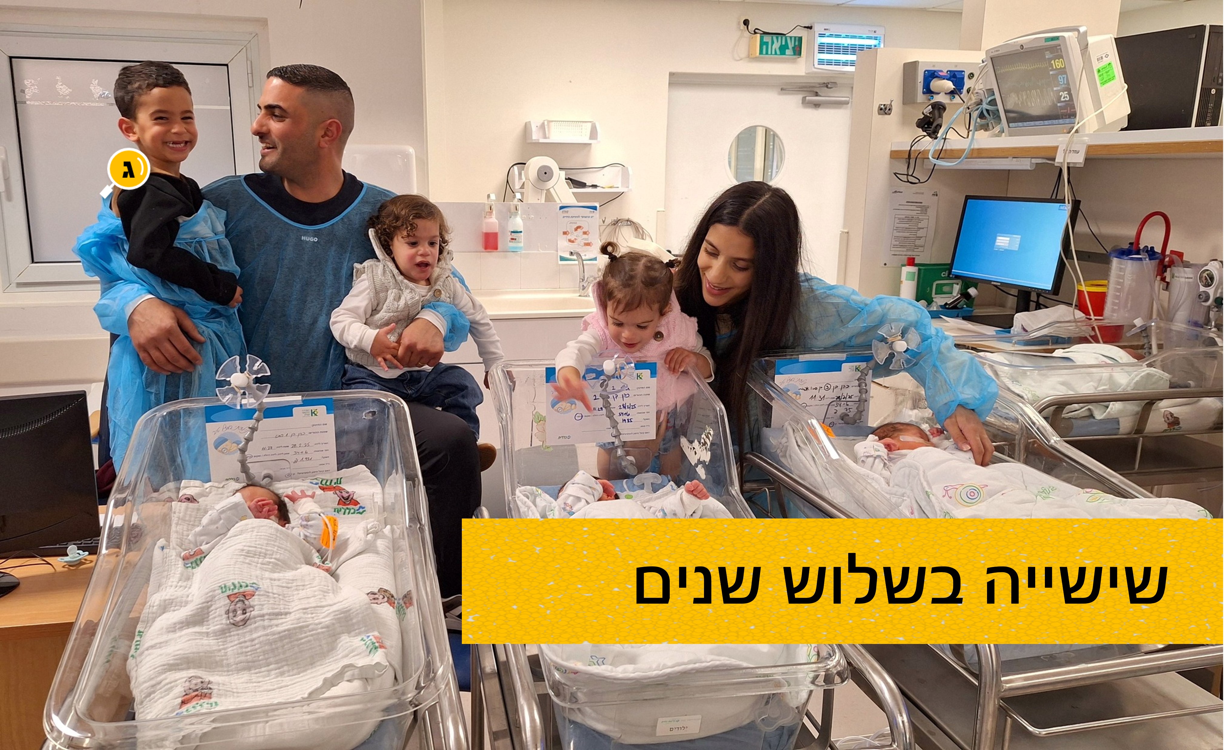 השלישייה הצטרפה למשפחה שכבר כוללת ילד בן שלוש ותאומים בני שנה וחצי! ובכך הפכה את המשפחה למורחבת במיוחד – שישה ילדים בתוך שלוש שנים בלבד, וכולם נולדו אצלנו 😍