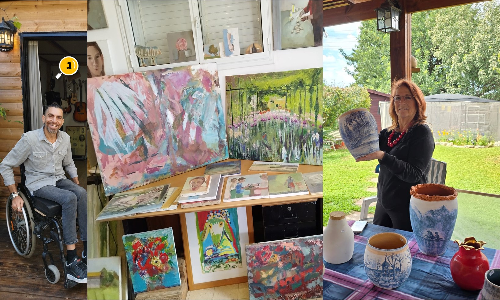 אחד מהאומנים שפתחו את ביתם הוא שי אלעד, אומן אשר יצירותיו מתמקדות בעץ ואשר מרותק לכסא גלגלים אשר מגביל את תנועתו אך לא את יצירותיו.