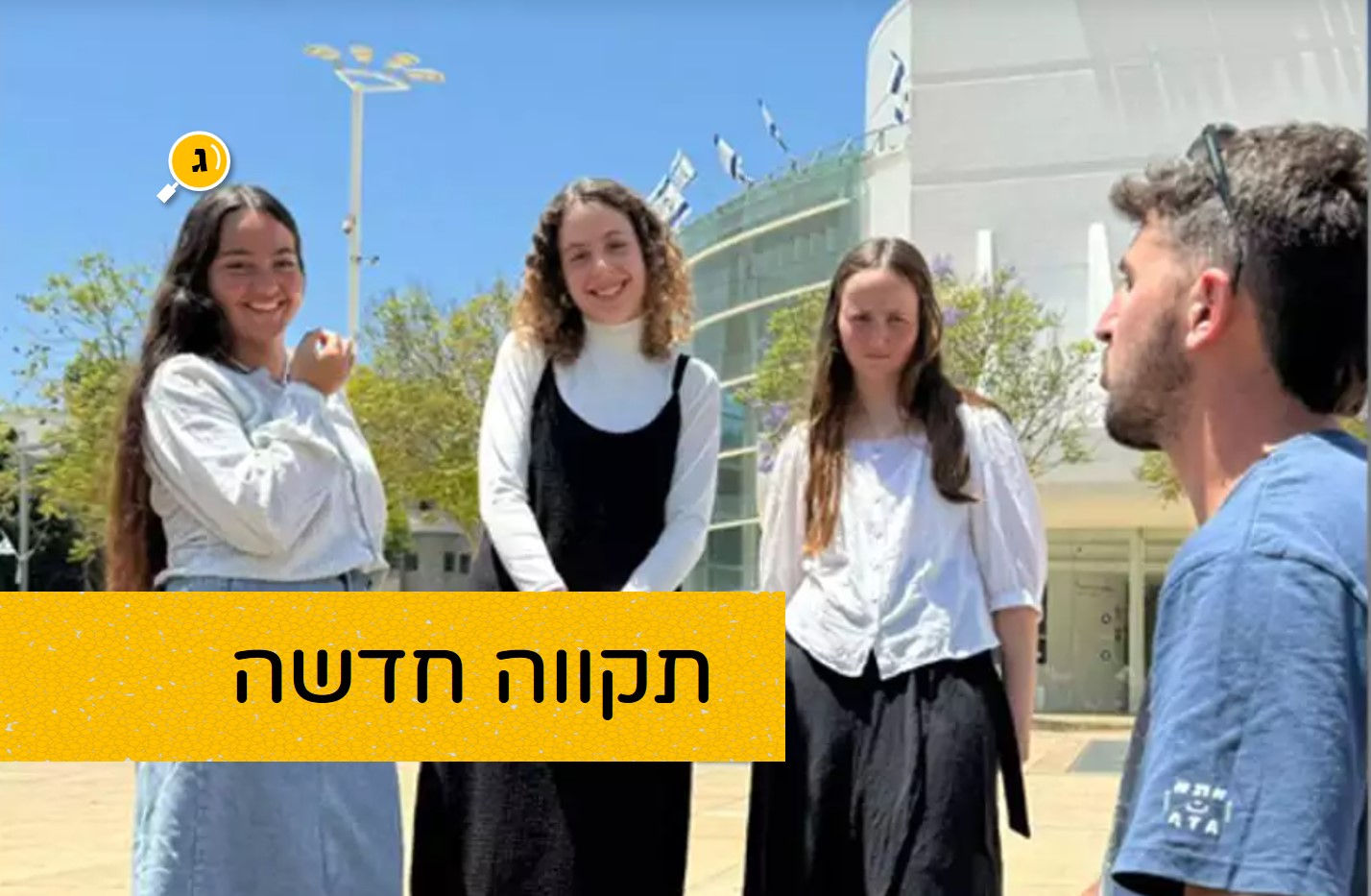 תקווה חדשה. על רקע המחלוקות בעם ועל רקע יום העצמאות המתקרב ובא, קיבלו בכיתה של רוני, תמר והלל, תלמידות אולפנת בהר”ן בגדרה, משימה מהמורה תמר: להגיא לרחובות תל אביב וקיים שיח על המדינה ועתידה עם תושבי העיר.